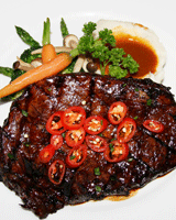 提供融合创意的美式料理,每季推出新菜;早丶午餐点主菜送软饮。【玉米脆饼 Nachos】焦脆的玉米薄饼搭配餐厅自制牛肉酱及莫泽里拉芝士,鲜辣中透出一股清新淡雅的奶香;拌以墨西哥辣椒丶黑橄榄丶番茄丁制成的番茄色拉,尽显酸丶甜丶辣多种滋味。【烟熏三文鱼芦笋色拉 Smoked Salmon & Asparagus Salad】淋上酸奶的三文鱼肉质鲜嫩而略带嚼劲,奶香与淡淡烟熏味在微咸中交织;与罗马生菜丶红叶生菜等多种生菜交错出清爽怡人口感,其中以清脆且略带苦味的落地球最特别,恰好中和掉三文鱼中较丰富的油脂。【烟熏三文鱼水波蛋 Smoked Salmon Benedict】腌渍过的三文鱼搭配外焦内软的烤全麦面包及水波蛋,并淋以荷兰汁,酸甜奶味更显三文鱼的鲜咸;加黄油爆炒的培根丶洋葱丶土豆赋予油香四溢之感;番茄淋上莫泽里拉芝士后放入烤箱,滋味清雅,酸甜适中;整体滋味丰盈饱满,曼妙诱人。【四川香辣肋眼牛排 Chef Ling’s Sichuan Rib Eye】是一道融合四川风味的美式牛排;澳洲进口牛肉淋上餐厅自制酱料煎好后,配以炒红尖椒,香浓多汁且嚼劲十足,滋味微辣;绵软且富奶香的土豆泥淋上香浓牛骨汁,更增鲜香;炒小胡萝卜丶芦笋和蟹味菇,清爽鲜嫩;整体滋味浓郁又不乏清爽。【香蕉盘煎薄饼配 Banana Pancakes】刚出炉的薄饼醇香松软且富弹性,将4片累叠起来,每层间放入少许香蕉片,再淋上波本威士忌调制出的波本糖浆,稠密清甜;彼此搭配,香甜却不腻口。