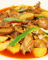即提供正宗新疆料理,也有依本地口味改良之菜式,并不断推陈出新,每半年更换一次菜单。【新疆大盘鸡 The Big Dish in Xinjiang Chicken】三黄鸡切块与土豆一同烹制,并以桂皮丶干红椒等十几种香料调味,浸在红彤彤的辣油中的鸡肉色泽红润鲜亮,软嫩鲜香的微辣口感与甘甜软绵的土豆味道相辅相成,滋味多元馥郁。【烤羊肉串 Mutton Shashlik】将质优味浓的新疆阿勒泰大尾巴羊后腿肉切成薄片,经特制咸香料腌渍后用竹签串起,在炭火上以孜然与辣子等调味烤出,烤后肉串油亮金黄,肥瘦相间的肉质尤为鲜嫩,浓郁的香味中略带辣意。【风味羊排 Fried Lamb Chops】羊排以洋葱丶胡萝卜丶八角等香料煮熟去腥,炸至酥脆后翻炒,并以孜然丶辣椒等调味,羊排外酥里嫩,微辣中伴随孜然香气;佐绿生菜丶番茄丶黄瓜等,为整体带入些微清爽。【新疆拉条子 Xinjiang Noodle】加入鸡蛋丶盐特制的面条由手工拉成,洁白通透且口感劲道爽滑,淋上由青椒丶蒜台丶辣子和西红柿一起翻炒的蔬菜,咸鲜滋味中略显辣意。【自制酸奶 Homemade Yogurt】蒙牛原味牛奶加入白糖丶蜂蜜发酵而成,酸奶浓稠且酸甜适宜,佐几颗葡萄干,丝滑口感中夹杂甜香气息,美味诱人。