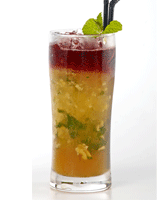 1. 将姜片、薄荷叶放入杯中,直接于杯中捣碎,再加入柠檬汁及蜂蜜调和。 2. 加入干邑和碎冰,再加红酒缓缓倒入杯中,让其停在上层,并以薄荷叶装饰即完成。 |