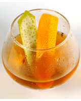 1. 将冰块置于杯中,将杯子「冰镇」备用。 2. 以另外一个调酒混合杯倒入干邑与冰块,搅拌25~30秒使其冰透。 3. 将#1杯中的冰块倒掉,并将#2干邑滤冰倒入#1。 4. 柠檬皮去除白色内层,并喷挤柳橙皮与柠檬皮的油于杯中。最后将Chartreuse由上向下喷入杯中即完成。 |